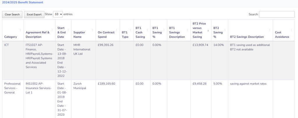 APUC produces a Benefit Statement for all of our members. This report lists all of the suppliers that are named on frameworks, the agreed benefits for the financial year, the spend data as advised by the supplier MI process, your institutions cash savings as well as BT1 and BT2 cash savings.